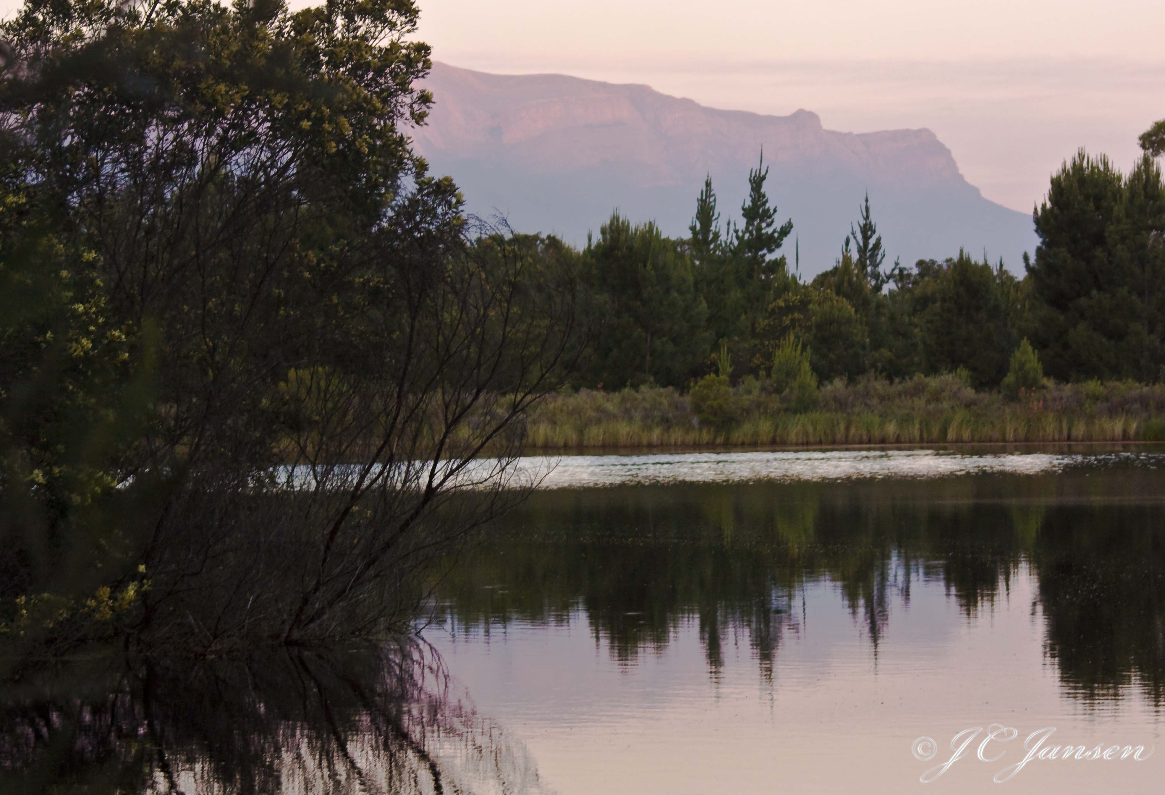 Late afternoon we decided to call it a day, said our farewells and rode to Ceres. We still had to buy some things for the braai. (The word braai is Afrikaans for “barbecue” and is a social custom in South Africa. The term has since been adopted by South Africans of many ethnic backgrounds.) For dinner we bought steak and ready made salads. Breakfast was going to consist of eggs and bacon. We had bought some bottled Darling Slow Brew Native Ales and a lovely 2009 Shiraz from Koelfontein. We found the Petervale Guest Farm on the internet which is about halfway between Ceres and Prince Alfreds Hamlet. Reuben the manager was extremely helpful and told us where our campsite was next to the dam. We had to ride a little bit towards the mountain on a sandy two track and then through some trees to end up on this awesome camp spot next to the dam under the trees. Christoff immediately declared that this camping spot is on the top of his list. The area has soft white sand and most of it is covered by soft pine needles which is like walking barefoot on a soft carpet.