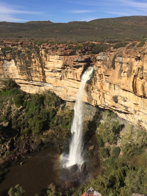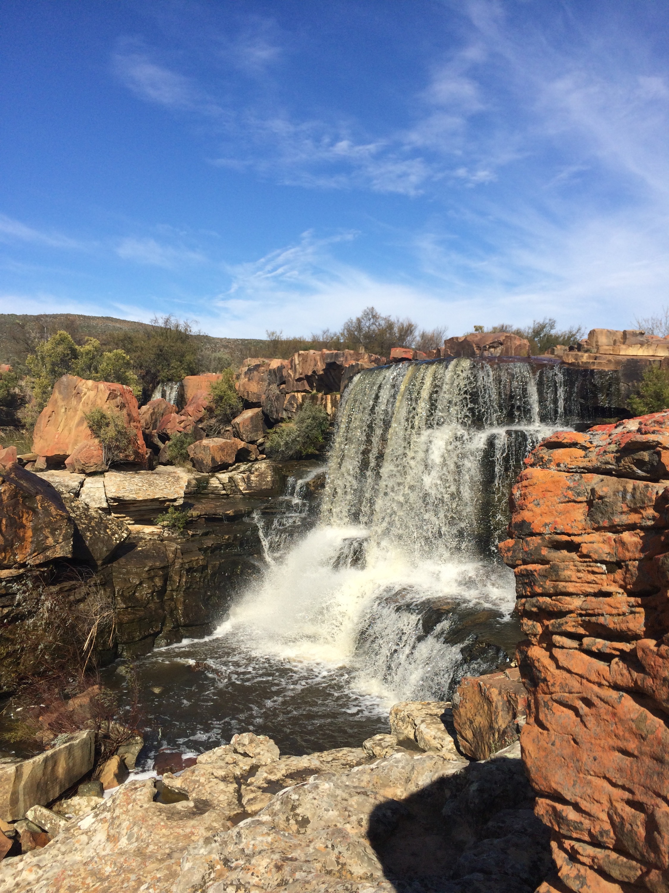 Up and over the pass and there’s a different world but the same. Wide open expanses with “koppies” dotted along the way. We found the big and small waterfalls 7km from Nieuwoudtville.