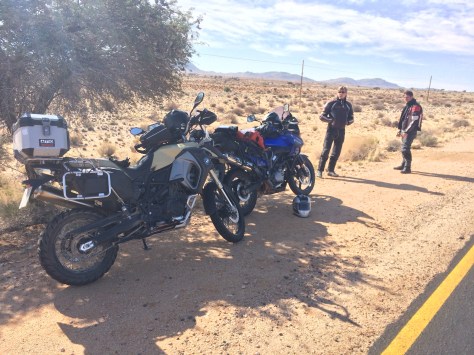 Stoof had to be refuelled at Bitterfontein where I saw a message from their dad to say they were not going to make the border and we had to meet them at Springbok. Another 150km from Bitterfontein and probably a good idea as the border was another 110km from there and it would have meant riding in the dark.