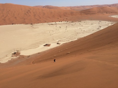 The pictures I’ve seen of Sossus vlei does not do nature justice. Dead trees surrounded by massive dunes on three sides is an amazing sight to behold. Off course the brothers convinced me to climb the highest dune from the most difficult angle. Climbing in loose sand up a massive dunes at midday on a winters day is tougher than one of the WOD’s I’ve had to perform. Dry desert air, 25°C and a dune to conquer. We had enough water and the view from the top was worth it.
