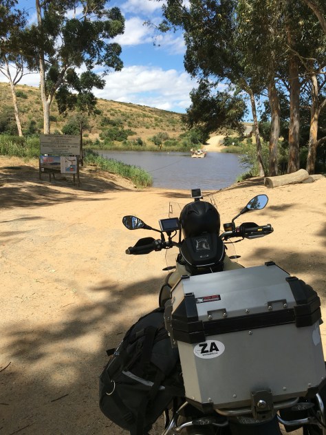 I wanted to go over the Breede River at Malgas using the pont. The Malgas ‘pont’ is famous for being the last hand-drawn pont of its kind in the country. Because the Breede is navigable for around 50km inland to Malgas, this was once an important trading port that served the whole area. At Swellendam I hit the gravel road. It’s the first time since Namibia that I’ve been off road again. For most of the trip so far I only saw one other biker. It stayed that way for the rest of the trip with me, occasional sheep and birds being the only beings on the road.